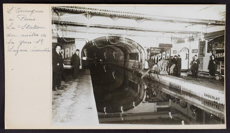 Keywords: L'ouragan à Paris. La station de métro de la gare St Lazare inondée.