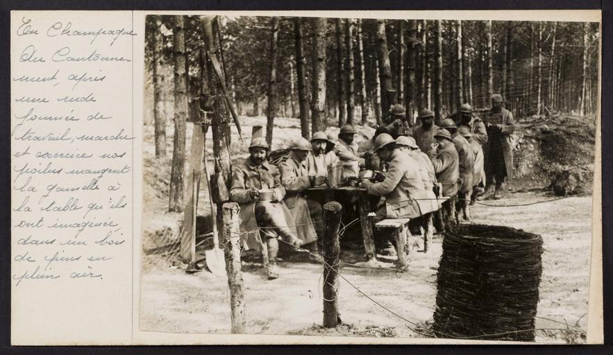 Keywords: bleu soldier soldiers french army frencharmy the great war thegreatwar great war greatwar world war one worldwarone world war i worldwari wwi first world war firstworldwar armée de terre arméedeterre armee de terre armeedeterre photo border outdoor En Champagne. Les poilus mangent leur gamelle en plein air. En Champagne. Les poilus mangent leur gamelle en plein air. |