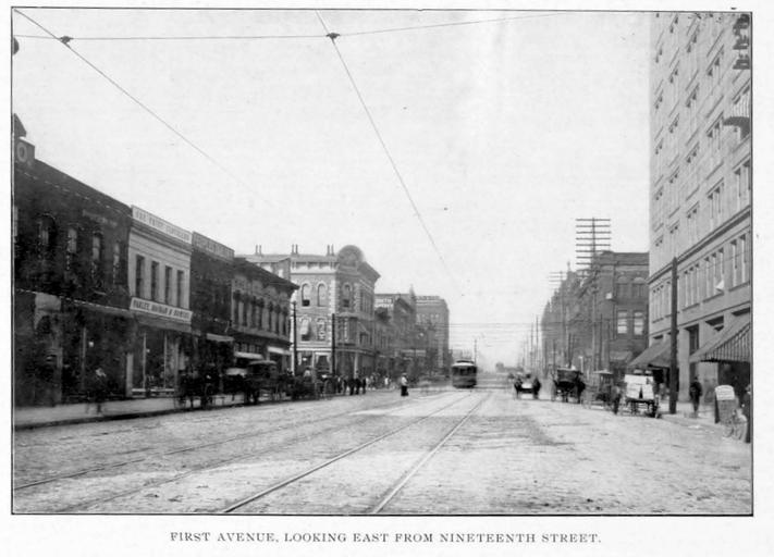 | Keywords: birmingham 1stavenue 1904 woodward linn streetcar blackandwhite architecture black and white This view of 1st Avenue, looking east towards the 20th Street intersection, show when "horse & buggy" still was the main form of individual transportation. Cars began to appear on the streets of Birmingham around this time (although none are in this pic). Early automobiles (today known as "Brass Cars") were toys for the rich. You can clearly see the tracks for Birmingham's extensive street car system. The cars were originally mule-drawn, but by the turn of the 20th century, they had transitioned to electricity. Clean and efficient street cars carried people throughout Birmingham and the surrounding neighborhoods. The electric street car system ended in the 1950's, replaced by gasoline-powered buses. On the right is the newly constructed Woodward Building, completed in 1902. The 10-story Woodward Building was Birmingham's first skyscraper, and for a time, the tallest building in Birmingham. Over the next few years, three other skyscrapers would be built bordering this intersection, making it the "Heaviest Corner on Earth". On the left, on the north-east corner of 1st and 20th Street, is "Linn's Folly", the National Bank of Birmingham (today the present site of the Brown-Marx Building). The bank building was constructed in 1872 and 1873, Birmingham's first multi-storied building. It was known as Linn's Folly because it was constructed during a national economic depression, during a high-risk period. (source: Bham.wiki.com) This view of 1st Avenue, looking east towards the 20th Street intersection, show when "horse & buggy" still was the main form of individual transportation. Cars began to appear on the streets of Birmingham around this time (although none are in this pic). Early automobiles (today known as "Brass Cars") were toys for the rich. You can clearly see the tracks for Birmingham's extensive street car system. The cars were originally mule-drawn, but by the turn of the 20th century, they had transitioned to electricity. Clean and efficient street cars carried people throughout Birmingham and the surrounding neighborhoods. The electric street car system ended in the 1950's, replaced by gasoline-powered buses. On the right is the newly constructed Woodward Building, completed in 1902. The 10-story Woodward Building was Birmingham's first skyscraper, and for a time, the tallest building in Birmingham. Over the next few years, three other skyscrapers would be built bordering this intersection, making it the "Heaviest Corner on Earth". On the left, on the north-east corner of 1st and 20th Street, is "Linn's Folly", the National Bank of Birmingham (today the present site of the Brown-Marx Building). The bank building was constructed in 1872 and 1873, Birmingham's first multi-storied building. It was known as Linn's Folly because it was constructed during a national economic depression, during a high-risk period. (source: Bham.wiki.com) |