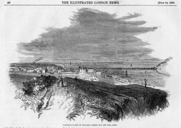 Keywords: 1st Herne Bay Pier 1850 001.jpg 1850 lithograph of Herne Bay showing in the background the first wooden Herne Bay pier built 1832 by Thomas Rhodes assistant to Thomas Telford London Illustrated News 1850-07-13 Edmund Evans 1826 “1905 out of copyright PD-old-70-1923 Books illustrated by Edmund Evans Herne Bay Pier 1850 lithographs Illustrated London News landscapes ILN 1850
