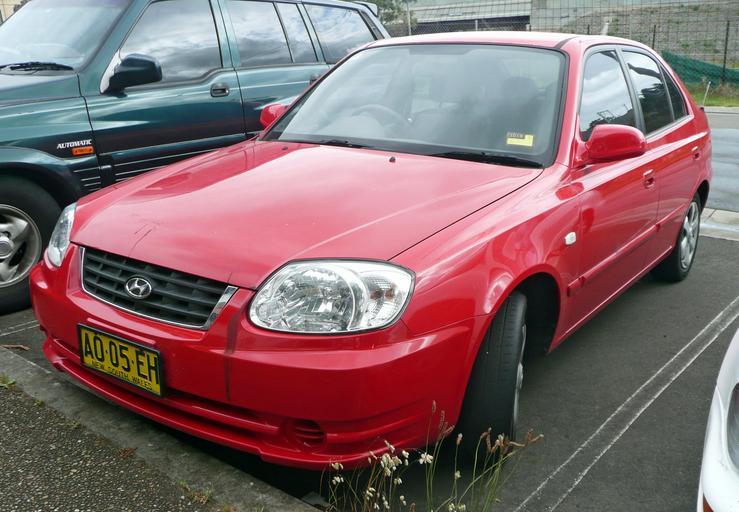 | Keywords: 2003-2006 Hyundai Accent (LC MY04) GL 5-door hatchback 01.jpg 2003 “2006 Hyundai Accent LC MY04 GL 5-door hatchback photographed in Sutherland New South Wales Australia 2009-11-17 Own OSX Released into the public domain OSX Hyundai Accent LC Red Hyundai hatchbacks Photographs by OSX |