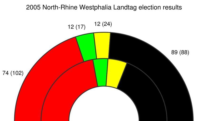| Keywords: 2005 nordrhein landtag result.svg Results of the 2005 Landtag election in North-Rhine Westphalia measured by seat totals SPD in red CDU in black FDP in yellow Greens in green en wikipedia 2010-04-07 Willhsmit wikipedia en Willhsmit original upload log page en wikipedia 2005_nordrhein_landtag_result png 2010-04-07 16 35 Mattbierner 530×307× 4762 bytes <nowiki>Reverted to version as of 19 45 23 May 2005</nowiki> 2010-04-07 16 35 Mattbierner 530×307× 4762 bytes <nowiki>Reverted to version as of 19 45 23 May 2005</nowiki> 2010-04-07 16 04 Mattbierner 512×300× 3965 bytes <nowiki>Updated to svg from raster</nowiki> 2005-05-23 19 45 Willhsmit 530×307× 4762 bytes <nowiki>Results of the 2005 Landtag election in North-Rhine Westphalia measured by seat totals SPD in red CDU in black FDP in yellow Greens in green </nowiki> Elections in 2005 2005 in North Rhine-Westphalia 2005 state elections in North Rhine-Westphalia |