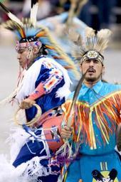 | Keywords: smithsonian institution smithsonianinstitution american indian americanindian traditional dress traditionaldress dance native american nativeamerican powwow first american firstamerican 2005 men two men dancing twomendancing feather headdress featherheaddress ceremony dancing tradition tribe feathers drum national powwow 2005 nationalpowwow2005 the native american dance off thenativeamericandanceoff ethnic culture event headdress national museum of the american indian nationalmuseumoftheamericanindian Description: Powwows are large social gatherings of Native Americans who follow traditional dances started centuries ago by their ancestors, and which continually evolve to include contemporary aspects. These events of drum music, dancing, singing, artistry and food, are attended by Natives and non-Natives, all of whom join in the dancing and take advantage of the opportunity to see old friends and teach the traditional ways to a younger generation. During the National Powwow, the audience see dancers in full regalia compete in several dance categories, including Men and Women's Golden Age (ages 50 and older); Men's Fancy Dance, Grass and Traditional (Northern and Southern); Women's Jingle Dress, Fancy Shawl, and Traditional (Northern and Southern); Teens (13-17); Juniors (6-12) and Tiny Tots (ages 5 and younger). The drum groups are the heart of all powwows and provide the pulsating and thunderous beats that accompany a dancer's every movement. The powwow is led by three "host drums" that showcase three distinct styles of singing (Northern, Southern and contemporary) and represent the best examples of each style. The drum contest highlights groups of 10 to 12 members each, and they sing traditional family songs that are passed down orally from one generation to the next. The National Museum of the American Indian sponsored the National Powwow in 2002, 2005, and 2007 as a way of presenting to the public the diversity and social traditions of contemporary Native cultures. Creator/Photographer: Katherine Fogden Medium: Digital photograph Culture: American Indian Geography: USA Date: 2005 Repository: National Museum of the American Indian Accession number: 081305KFPWd081 Description: Powwows are large social gatherings of Native Americans who follow traditional dances started centuries ago by their ancestors, and which continually evolve to include contemporary aspects. These events of drum music, dancing, singing, artistry and food, are attended by Natives and non-Natives, all of whom join in the dancing and take advantage of the opportunity to see old friends and teach the traditional ways to a younger generation. During the National Powwow, the audience see dancers in full regalia compete in several dance categories, including Men and Women's Golden Age (ages 50 and older); Men's Fancy Dance, Grass and Traditional (Northern and Southern); Women's Jingle Dress, Fancy Shawl, and Traditional (Northern and Southern); Teens (13-17); Juniors (6-12) and Tiny Tots (ages 5 and younger). The drum groups are the heart of all powwows and provide the pulsating and thunderous beats that accompany a dancer's every movement. The powwow is led by three "host drums" that showcase three distinct styles of singing (Northern, Southern and contemporary) and represent the best examples of each style. The drum contest highlights groups of 10 to 12 members each, and they sing traditional family songs that are passed down orally from one generation to the next. The National Museum of the American Indian sponsored the National Powwow in 2002, 2005, and 2007 as a way of presenting to the public the diversity and social traditions of contemporary Native cultures. Creator/Photographer: Katherine Fogden Medium: Digital photograph Culture: American Indian Geography: USA Date: 2005 Repository: National Museum of the American Indian Accession number: 081305KFPWd081 |