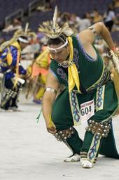 | Keywords: smithsonian institution smithsonianinstitution native american nativeamerican native dance nativedance cultural dance culturaldance competitive native dance competitivenativedance tribal dance tribaldance national powwow 2005 nationalpowwow2005 native american contest nativeamericancontest pow wow powwow american indian americanindian native dance feather national museum of the american indian nationalmuseumoftheamericanindian Description: Powwows are large social gatherings of Native Americans who follow traditional dances started centuries ago by their ancestors, and which continually evolve to include contemporary aspects. These events of drum music, dancing, singing, artistry and food, are attended by Natives and non-Natives, all of whom join in the dancing and take advantage of the opportunity to see old friends and teach the traditional ways to a younger generation. During the National Powwow, the audience see dancers in full regalia compete in several dance categories, including Men and Women's Golden Age (ages 50 and older); Men's Fancy Dance, Grass and Traditional (Northern and Southern); Women's Jingle Dress, Fancy Shawl, and Traditional (Northern and Southern); Teens (13-17); Juniors (6-12) and Tiny Tots (ages 5 and younger). The drum groups are the heart of all powwows and provide the pulsating and thunderous beats that accompany a dancer's every movement. The powwow is led by three "host drums" that showcase three distinct styles of singing (Northern, Southern and contemporary) and represent the best examples of each style. The drum contest highlights groups of 10 to 12 members each, and they sing traditional family songs that are passed down orally from one generation to the next. The National Museum of the American Indian sponsored the National Powwow in 2002, 2005, and 2007 as a way of presenting to the public the diversity and social traditions of contemporary Native cultures. Creator/Photographer: Walter Larrimore Medium: Digital photograph Culture: American Indian Geography: USA Date: 2005 Repository: National Museum of the American Indian Accession number: 081205WLPOWWOW0123 Description: Powwows are large social gatherings of Native Americans who follow traditional dances started centuries ago by their ancestors, and which continually evolve to include contemporary aspects. These events of drum music, dancing, singing, artistry and food, are attended by Natives and non-Natives, all of whom join in the dancing and take advantage of the opportunity to see old friends and teach the traditional ways to a younger generation. During the National Powwow, the audience see dancers in full regalia compete in several dance categories, including Men and Women's Golden Age (ages 50 and older); Men's Fancy Dance, Grass and Traditional (Northern and Southern); Women's Jingle Dress, Fancy Shawl, and Traditional (Northern and Southern); Teens (13-17); Juniors (6-12) and Tiny Tots (ages 5 and younger). The drum groups are the heart of all powwows and provide the pulsating and thunderous beats that accompany a dancer's every movement. The powwow is led by three "host drums" that showcase three distinct styles of singing (Northern, Southern and contemporary) and represent the best examples of each style. The drum contest highlights groups of 10 to 12 members each, and they sing traditional family songs that are passed down orally from one generation to the next. The National Museum of the American Indian sponsored the National Powwow in 2002, 2005, and 2007 as a way of presenting to the public the diversity and social traditions of contemporary Native cultures. Creator/Photographer: Walter Larrimore Medium: Digital photograph Culture: American Indian Geography: USA Date: 2005 Repository: National Museum of the American Indian Accession number: 081205WLPOWWOW0123 |