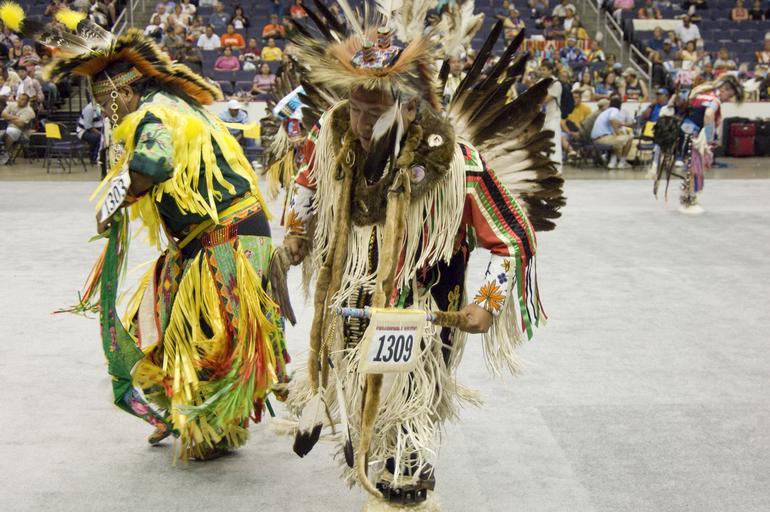| Keywords: smithsonian institution smithsonianinstitution dancing dance native american headdress competition moccasins traditional tribal costume american indian americanindian fancy dancer fancydancer regalia competitive indian dancing indiandancing full costume fullcostume feathers native american nativeamerican indianen traditionele dans traditioneledans veren hoofdtooi event indian tribe pow wow powwow native americans nativeamericans celegratw celebrate tradition national museum of the american indian nationalmuseumoftheamericanindian outdoor Description: Powwows are large social gatherings of Native Americans who follow traditional dances started centuries ago by their ancestors, and which continually evolve to include contemporary aspects. These events of drum music, dancing, singing, artistry and food, are attended by Natives and non-Natives, all of whom join in the dancing and take advantage of the opportunity to see old friends and teach the traditional ways to a younger generation. During the National Powwow, the audience see dancers in full regalia compete in several dance categories, including Men and Women's Golden Age (ages 50 and older); Men's Fancy Dance, Grass and Traditional (Northern and Southern); Women's Jingle Dress, Fancy Shawl, and Traditional (Northern and Southern); Teens (13-17); Juniors (6-12) and Tiny Tots (ages 5 and younger). The drum groups are the heart of all powwows and provide the pulsating and thunderous beats that accompany a dancer's every movement. The powwow is led by three "host drums" that showcase three distinct styles of singing (Northern, Southern and contemporary) and represent the best examples of each style. The drum contest highlights groups of 10 to 12 members each, and they sing traditional family songs that are passed down orally from one generation to the next. The National Museum of the American Indian sponsored the National Powwow in 2002, 2005, and 2007 as a way of presenting to the public the diversity and social traditions of contemporary Native cultures. Creator/Photographer: Walter Larrimore Medium: Digital photograph Culture: American Indian Geography: USA Date: 2005 Repository: National Museum of the American Indian Accession number: 081205WLPOWWOW0604 Description: Powwows are large social gatherings of Native Americans who follow traditional dances started centuries ago by their ancestors, and which continually evolve to include contemporary aspects. These events of drum music, dancing, singing, artistry and food, are attended by Natives and non-Natives, all of whom join in the dancing and take advantage of the opportunity to see old friends and teach the traditional ways to a younger generation. During the National Powwow, the audience see dancers in full regalia compete in several dance categories, including Men and Women's Golden Age (ages 50 and older); Men's Fancy Dance, Grass and Traditional (Northern and Southern); Women's Jingle Dress, Fancy Shawl, and Traditional (Northern and Southern); Teens (13-17); Juniors (6-12) and Tiny Tots (ages 5 and younger). The drum groups are the heart of all powwows and provide the pulsating and thunderous beats that accompany a dancer's every movement. The powwow is led by three "host drums" that showcase three distinct styles of singing (Northern, Southern and contemporary) and represent the best examples of each style. The drum contest highlights groups of 10 to 12 members each, and they sing traditional family songs that are passed down orally from one generation to the next. The National Museum of the American Indian sponsored the National Powwow in 2002, 2005, and 2007 as a way of presenting to the public the diversity and social traditions of contemporary Native cultures. Creator/Photographer: Walter Larrimore Medium: Digital photograph Culture: American Indian Geography: USA Date: 2005 Repository: National Museum of the American Indian Accession number: 081205WLPOWWOW0604 |