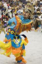| Keywords: smithsonian institution smithsonianinstitution native american dance nativeamericandance powwow native american costume nativeamericancostume native american nativeamerican dance costume feathers celebration festival colors dancing tribal yellow orange young man youngman indian ritual fringe blue crowd event mens fancy dance mensfancydance colorful championships crowds headdress native dancer traditiona national museum of the american indian nationalmuseumoftheamericanindian Description: Powwows are large social gatherings of Native Americans who follow traditional dances started centuries ago by their ancestors, and which continually evolve to include contemporary aspects. These events of drum music, dancing, singing, artistry and food, are attended by Natives and non-Natives, all of whom join in the dancing and take advantage of the opportunity to see old friends and teach the traditional ways to a younger generation. During the National Powwow, the audience see dancers in full regalia compete in several dance categories, including Men and Women's Golden Age (ages 50 and older); Men's Fancy Dance, Grass and Traditional (Northern and Southern); Women's Jingle Dress, Fancy Shawl, and Traditional (Northern and Southern); Teens (13-17); Juniors (6-12) and Tiny Tots (ages 5 and younger). The drum groups are the heart of all powwows and provide the pulsating and thunderous beats that accompany a dancer's every movement. The powwow is led by three "host drums" that showcase three distinct styles of singing (Northern, Southern and contemporary) and represent the best examples of each style. The drum contest highlights groups of 10 to 12 members each, and they sing traditional family songs that are passed down orally from one generation to the next. The National Museum of the American Indian sponsored the National Powwow in 2002, 2005, and 2007 as a way of presenting to the public the diversity and social traditions of contemporary Native cultures. Creator/Photographer: Walter Larrimore Medium: Digital photograph Culture: American Indian Geography: USA Date: 2005 Repository: National Museum of the American Indian Accession number: 081205WLPOWWOW0109 Description: Powwows are large social gatherings of Native Americans who follow traditional dances started centuries ago by their ancestors, and which continually evolve to include contemporary aspects. These events of drum music, dancing, singing, artistry and food, are attended by Natives and non-Natives, all of whom join in the dancing and take advantage of the opportunity to see old friends and teach the traditional ways to a younger generation. During the National Powwow, the audience see dancers in full regalia compete in several dance categories, including Men and Women's Golden Age (ages 50 and older); Men's Fancy Dance, Grass and Traditional (Northern and Southern); Women's Jingle Dress, Fancy Shawl, and Traditional (Northern and Southern); Teens (13-17); Juniors (6-12) and Tiny Tots (ages 5 and younger). The drum groups are the heart of all powwows and provide the pulsating and thunderous beats that accompany a dancer's every movement. The powwow is led by three "host drums" that showcase three distinct styles of singing (Northern, Southern and contemporary) and represent the best examples of each style. The drum contest highlights groups of 10 to 12 members each, and they sing traditional family songs that are passed down orally from one generation to the next. The National Museum of the American Indian sponsored the National Powwow in 2002, 2005, and 2007 as a way of presenting to the public the diversity and social traditions of contemporary Native cultures. Creator/Photographer: Walter Larrimore Medium: Digital photograph Culture: American Indian Geography: USA Date: 2005 Repository: National Museum of the American Indian Accession number: 081205WLPOWWOW0109 |
