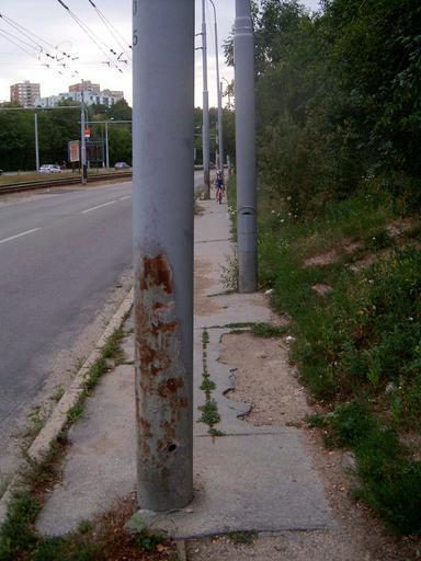 Keywords: 2006.7.30 Komín 007.jpg cs Brno Komín trolejbusové vedení v chodníku own I Sáček senior Brno-Komín