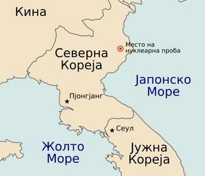 | Keywords: 2006 North Korean nuclear test mk.svg en Map of the North Korean nuclear test of October 9 2006 The red marker indicates the estimated location of the test 41 311°N 129 114°E mk естото на нуклеа ната п оба во Севе на Ко еја Based off of maps from the CIA World Factbook translated from this translated by MacedonianBoy File 2006 North Korean nuclear test svg Maps of North Korea SVG maps in Macedonian SVG maps showing history in Macedonian | ||||