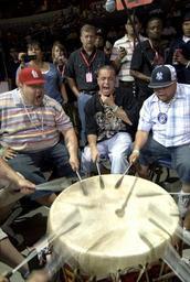 Keywords: smithsonian institution smithsonianinstitution drum 2007 powwow 2007powwow native american drum nativeamericandrum music celebration group sound groupsound modern american indian modernamericanindian drumming circle drummingcircle native american nativeamerican ceremony drumming pow wow powwow drum circle drumcircle singing festival sports trucker hats truckerhats baseball cap baseballcap drums drummers native indian nativeindian singers rythm callers tradutional herati national museum of the american indian nationalmuseumoftheamericanindian performer musician people Description: Powwows are large social gatherings of Native Americans who follow traditional dances started centuries ago by their ancestors, and which continually evolve to include contemporary aspects. These events of drum music, dancing, singing, artistry and food, are attended by Natives and non-Natives, all of whom join in the dancing and take advantage of the opportunity to see old friends and teach the traditional ways to a younger generation. During the National Powwow, the audience see dancers in full regalia compete in several dance categories, including Men and Women's Golden Age (ages 50 and older); Men's Fancy Dance, Grass and Traditional (Northern and Southern); Women's Jingle Dress, Fancy Shawl, and Traditional (Northern and Southern); Teens (13-17); Juniors (6-12) and Tiny Tots (ages 5 and younger). The drum groups are the heart of all powwows and provide the pulsating and thunderous beats that accompany a dancer's every movement. The powwow is led by three "host drums" that showcase three distinct styles of singing (Northern, Southern and contemporary) and represent the best examples of each style. The drum contest highlights groups of 10 to 12 members each, and they sing traditional family songs that are passed down orally from one generation to the next. The National Museum of the American Indian sponsored the National Powwow in 2002, 2005, and 2007 as a way of presenting to the public the diversity and social traditions of contemporary Native cultures. Creator/Photographer: Cynthia Frankenburg Medium: Digital photograph Culture: American Indian Geography: USA Date: 2007 Repository: National Museum of the American Indian Accession number: 20070810_01a_csf_ps_303 Description: Powwows are large social gatherings of Native Americans who follow traditional dances started centuries ago by their ancestors, and which continually evolve to include contemporary aspects. These events of drum music, dancing, singing, artistry and food, are attended by Natives and non-Natives, all of whom join in the dancing and take advantage of the opportunity to see old friends and teach the traditional ways to a younger generation. During the National Powwow, the audience see dancers in full regalia compete in several dance categories, including Men and Women's Golden Age (ages 50 and older); Men's Fancy Dance, Grass and Traditional (Northern and Southern); Women's Jingle Dress, Fancy Shawl, and Traditional (Northern and Southern); Teens (13-17); Juniors (6-12) and Tiny Tots (ages 5 and younger). The drum groups are the heart of all powwows and provide the pulsating and thunderous beats that accompany a dancer's every movement. The powwow is led by three "host drums" that showcase three distinct styles of singing (Northern, Southern and contemporary) and represent the best examples of each style. The drum contest highlights groups of 10 to 12 members each, and they sing traditional family songs that are passed down orally from one generation to the next. The National Museum of the American Indian sponsored the National Powwow in 2002, 2005, and 2007 as a way of presenting to the public the diversity and social traditions of contemporary Native cultures. Creator/Photographer: Cynthia Frankenburg Medium: Digital photograph Culture: American Indian Geography: USA Date: 2007 Repository: National Museum of the American Indian Accession number: 20070810_01a_csf_ps_303