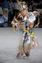Keywords: smithsonian institution smithsonianinstitution cynthia frankenburg cynthiafrankenburg pow-wows powwows native-americans nativeamericans boy dancer native american nativeamerican ritual traditional dance leather beadwork feather headress featherheadress contest pow wow powwow 2007 native american boy nativeamericanboy indian boy indianboy indian competitive tribal national museum of the american indian nationalmuseumoftheamericanindian outdoor Description: Powwows are large social gatherings of Native Americans who follow traditional dances started centuries ago by their ancestors, and which continually evolve to include contemporary aspects. These events of drum music, dancing, singing, artistry and food, are attended by Natives and non-Natives, all of whom join in the dancing and take advantage of the opportunity to see old friends and teach the traditional ways to a younger generation. During the National Powwow, the audience see dancers in full regalia compete in several dance categories, including Men and Women's Golden Age (ages 50 and older); Men's Fancy Dance, Grass and Traditional (Northern and Southern); Women's Jingle Dress, Fancy Shawl, and Traditional (Northern and Southern); Teens (13-17); Juniors (6-12) and Tiny Tots (ages 5 and younger). The drum groups are the heart of all powwows and provide the pulsating and thunderous beats that accompany a dancer's every movement. The powwow is led by three "host drums" that showcase three distinct styles of singing (Northern, Southern and contemporary) and represent the best examples of each style. The drum contest highlights groups of 10 to 12 members each, and they sing traditional family songs that are passed down orally from one generation to the next. The National Museum of the American Indian sponsored the National Powwow in 2002, 2005, and 2007 as a way of presenting to the public the diversity and social traditions of contemporary Native cultures. Creator/Photographer: Cynthia Frankenburg Medium: Digital photograph Culture: American Indian Geography: USA Date: 2007 Repository: National Museum of the American Indian Accession number: 20070811_01a_csf_ps_064 Description: Powwows are large social gatherings of Native Americans who follow traditional dances started centuries ago by their ancestors, and which continually evolve to include contemporary aspects. These events of drum music, dancing, singing, artistry and food, are attended by Natives and non-Natives, all of whom join in the dancing and take advantage of the opportunity to see old friends and teach the traditional ways to a younger generation. During the National Powwow, the audience see dancers in full regalia compete in several dance categories, including Men and Women's Golden Age (ages 50 and older); Men's Fancy Dance, Grass and Traditional (Northern and Southern); Women's Jingle Dress, Fancy Shawl, and Traditional (Northern and Southern); Teens (13-17); Juniors (6-12) and Tiny Tots (ages 5 and younger). The drum groups are the heart of all powwows and provide the pulsating and thunderous beats that accompany a dancer's every movement. The powwow is led by three "host drums" that showcase three distinct styles of singing (Northern, Southern and contemporary) and represent the best examples of each style. The drum contest highlights groups of 10 to 12 members each, and they sing traditional family songs that are passed down orally from one generation to the next. The National Museum of the American Indian sponsored the National Powwow in 2002, 2005, and 2007 as a way of presenting to the public the diversity and social traditions of contemporary Native cultures. Creator/Photographer: Cynthia Frankenburg Medium: Digital photograph Culture: American Indian Geography: USA Date: 2007 Repository: National Museum of the American Indian Accession number: 20070811_01a_csf_ps_064