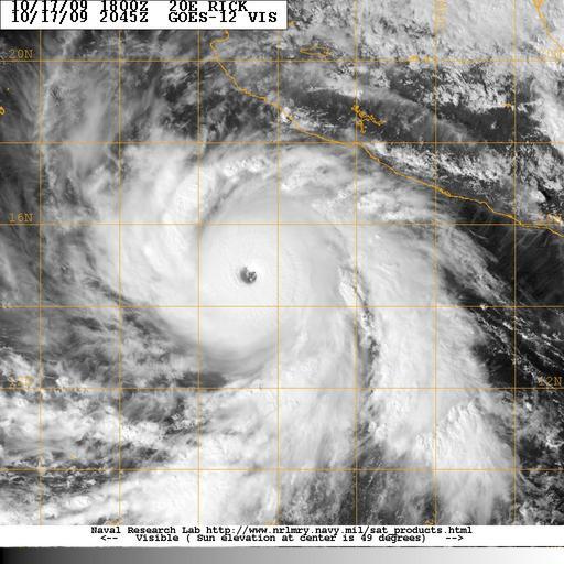 Keywords: 20091017.2045.goes12.x.vis1km.20ERICK.125kts-938mb-146N-1039W.100pc.jpg en Hurricane Rick as a strong Category 4 hurricane http //199 9 2 143/tcdat/tc09/EPAC/20E RICK/vis/geo/1km/ NRL 2009-10-17 Public domain PD-USGov-Military-Navy Hurricane Rick 2009 |