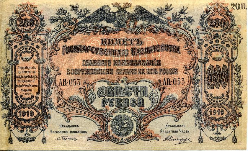 Keywords: 200 Roubles cossacks 1919 back.jpg en Russian Don banknote 200 rubles 1919 year Back ru Банкнота Донской области достоинством 200 ублей об азца 1919 года scanned note from own personal collection П авительство Донской области/Ростовская конто а Госбанка 1919 1919 currency Banknotes of Don 1919 Banknotes with a face value of 200 |