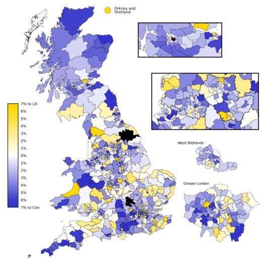 Keywords: 2010UKElectionLDConSwing.svg Liberal Democrat to Conservative swing in Great Britain in the 2010 general election own Wereon Parliament of the United Kingdom 2010 UK General election