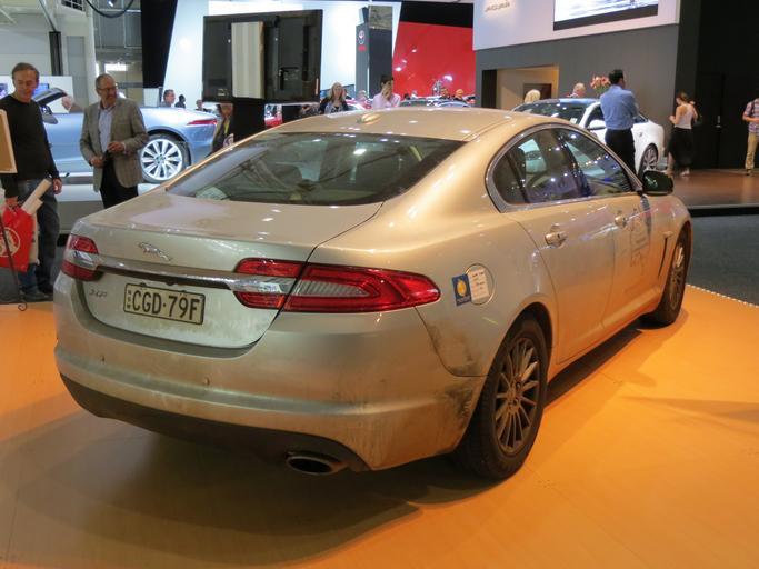 | Keywords: 2012 Jaguar XF (X250 MY12) Luxury sedan (2012-10-26) 02.jpg 2012 Jaguar XF X250 MY12 Luxury sedan photographed at the 2012 Australian International Motor Show Sydney New South Wales Australia <br /><br />The framed document on the windshield is a certificate from the Australian Book of Records awarded to the Jaguar XF 2 2 Diesel team for setting a New Australian Record ¦ while driving a Jaguar XF 2 2 Diesel for the lowest fuel consumption diesel automatic in the under 3 litre category circumnavigating Australia covered 13 925 km ™s achieving 3 98 L/100 km between 24 September to 19 October 2012 2012-10-26 Own OSX -33 875839 151 200012 OSX Jaguar XF X250 Saloon Silver sedans Jaguar at the 2012 Australian International Motor Show Photographs by OSX |