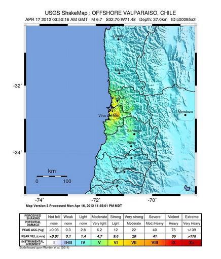 Keywords: 2012chileaprilearth.jpg es Mapa de intensidades del sismo 6 7 en Chile Abril 2012 2012-05-17 http //earthquake usgs gov/earthquakes/shakemap/global/shake/c00095a2/ USGS PD-USGov Uploaded with UploadWizard ShakeMaps Earthquakes in Chile Earthquakes of 2012 |