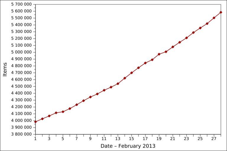 | Keywords: 2013-02 Wikidata items EN.svg de Grafische Darstellung des vollständigen Anzahls der angelegten Gegenstände auf Wikidata in Februar 2013 auf Englisch Löschungen werden nicht berücksichtigt en Graph presenting the total number of items created on Wikidata as of February 2013 in English Item deletions are not taken into account fr Graphique en anglais représentant le nombre total d'éléments créés sur Wikidata en février 2013 Les suppressions d'éléments ne sont pas prises en compte 2013-03-01 16 07 own Ljubinka cc-zero File 2013-02 Wikidata items DE svg File 2013-02 Wikidata items FR svg Wikidata statistics in February 2013 Wikidata statistics in English |