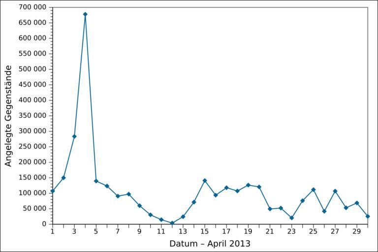 MAKE A MEME View Large Image Wikidata item creation DE.svg de Grafische Darstellung des täglichen Anzahls der in April 2013 angelegten Gegenstände auf Wikidata auf Deutsch Löschungen werden nicht berücksichtigt en Graph presenting the number of items created daily ...