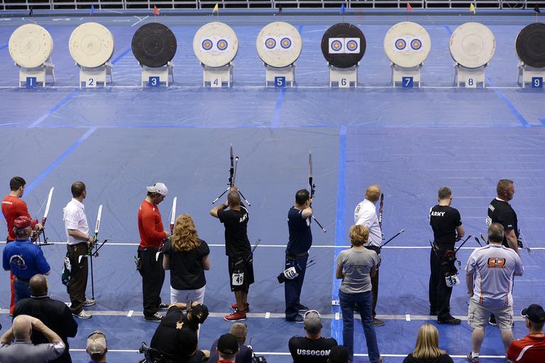 | Keywords: 2013 Warrior Games 130515-D-DB155-001.jpg en 2013 Warrior Games athletes compete in archery at the U S Air Force Academy in Colorado Springs Colo May 15 Each archer will compete in the compound or recurve bow They shoot three arrows each for four rounds From May 11-16 more than 200 wounded ill and injured service members and veterans from the U S Marines Army Air Force and Navy as well as a team representing U S Special Operations Command and a United Kingdom team will compete for the gold in track and field shooting cycling swimming archery wheelchair basketball and sitting volleyball at the U S Olympic Training Center and U S Air Force Academy The military service with the most medals will win the Commander's Cup 2013-05-15 EJ Hersom https //www dvidshub net/image/932993 130515-D-DB155-001 2013-05-16 04 12 COLORADO SPRINGS CO US PD-USGov U S Olympic Training Center Images from DoD uploaded by Fæ |