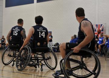 | Keywords: 2013 Warrior Games Wheelchair Basketball 130414-N-DT940-554.jpg en Team Navy/Coast Guard member retired Gunner's Mate Chief Hector Varela of San Diego and teammates retired Hospital Corpsman 2nd Class Sonny Lemerande of Twentynine Palms Calif and retired Explosive Ordnance Disposal Technician 1st Class John Kremer of Buford Ga prepare to block a pass by an opposing team in a game of wheelchair basketball against Team Air Force during the 2013 Warrior Games May 14 The Warrior Games includes competitions in archery cycling seated volleyball shooting swimming track and field and wheelchair basketball The goal of the Warrior Games is not necessarily to identify the most skilled athletes but rather to demonstrate the incredible potential of wounded warriors through competitive sports More than 200 wounded ill or injured service members from the U S and U K armed forces are scheduled to compete in the Paralympics-style competition May 11-16 U S Navy photo by Mass Communication Specialist 1st Class Erica R Gardner/Released 2013-05-14 Petty Officer 1st Class Erica R Gardner https //www dvidshub net/image/932387 130414-N-DT940-554 2013-05-15 13 54 COLORADO SPRINGS CO US PD-USGov-Military-Navy Twentynine Palms California Images from DoD uploaded by Fæ |