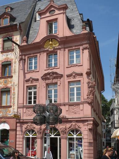 | Keywords: 20140801Markt Mainz.jpg žHaus zum Silberberg am Markt 3 Mainz 1548 erwähnt žan der Münz seit 1745 als Löwen-Apotheke bezeichnet Bei den Luftangriffen auf Mainz am 27 Februar 1945 völlig zerstört 1950 provisorisch errichtet und 1983 historisierend wiederhergestellt; daher kein Baudenkmal Die Apotheke ist eine von drei bis hin zu ihrer Gründung nachweisbaren historischen Mainzer Apotheken žHaus zum Silberberg at Markt 3 Mainz Earliest mentioning in 1548 as žan der Münz by the mint Since 1745 referred to as Löwen-Apotheke lions apothecary Totally destroyed on 27 February 1945 during the bombing of Mainz in World War II by the Royal Air Force Provisorily reerected in 1950 Historicising restored in 1983 This pharmacy is one out of three historical pharmacies of Mainz verifiable until its foundation own AnRo0002 2014-08-01 Cc-zero Markt Mainz |