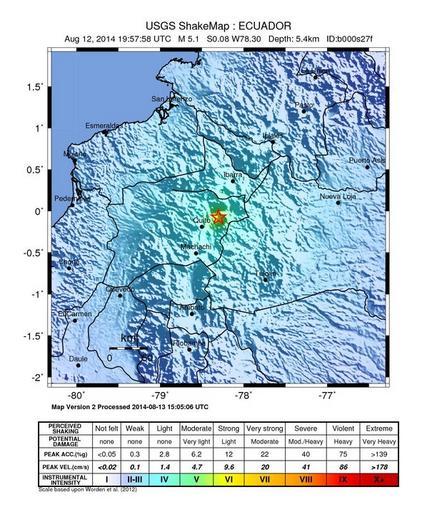 Keywords: 2014 Quito earthquake.jpg es Mapa de intensidad del sismo en quito de 2014 2014-08-13 13 24 32 http //earthquake usgs gov/earthquakes/eventpage/usb000s27f summary USGS PD-USGov Uploaded with UploadWizard ShakeMaps Earthquakes in Ecuador Earthquakes of 2014 |