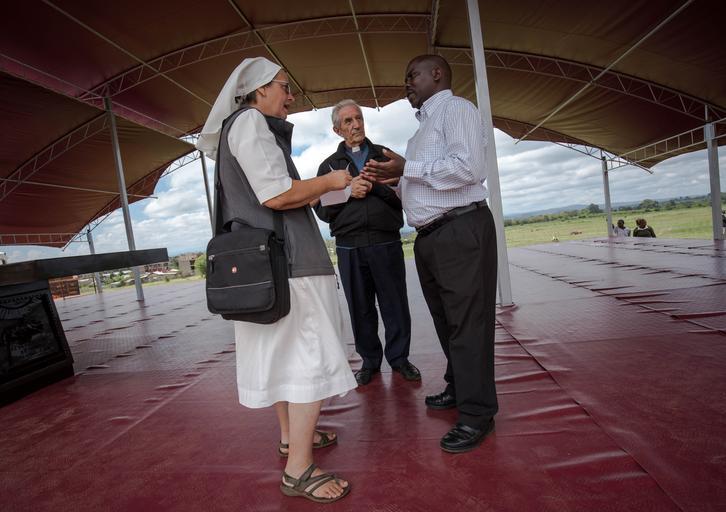 | Keywords: kenya nyeri africa roman catholic italy nun sister irene stefani sainthood missionary world war one beatification ceremony soldiers wounded tourism christian nuns faith religion KENYA, Nyeri: In a photograph taken 21 May 2015, and made available by Make It Kenya, officials discuss ahead of Kenya and Africa's first Roman Catholic beatification ceremony. Final preparations are being made to host thousands of worshippers, officials and visitors who are expected to congregate 23 May for the event in the town of Nyeri approx. 150 kilometers north of the Kenyan capital Nairobi. The ceremony is a critical step towards sainthood for Irene Stefani, an Italian nun and missionary who is beloved in Nyeri and its environs for her selfless service to wounded World War One soldiers and ailing locals alike. Sister Stefani arrived in Kenya in 1915 and gained fame over the following years for her generosity and extraordinary empathy. She died in 1930 after contracting plague. MANDATORY CREDIT: MAKE IT KENYA PHOTO / STUART PRICE. KENYA, Nyeri: In a photograph taken 21 May 2015, and made available by Make It Kenya, officials discuss ahead of Kenya and Africa's first Roman Catholic beatification ceremony. Final preparations are being made to host thousands of worshippers, officials and visitors who are expected to congregate 23 May for the event in the town of Nyeri approx. 150 kilometers north of the Kenyan capital Nairobi. The ceremony is a critical step towards sainthood for Irene Stefani, an Italian nun and missionary who is beloved in Nyeri and its environs for her selfless service to wounded World War One soldiers and ailing locals alike. Sister Stefani arrived in Kenya in 1915 and gained fame over the following years for her generosity and extraordinary empathy. She died in 1930 after contracting plague. MANDATORY CREDIT: MAKE IT KENYA PHOTO / STUART PRICE. |