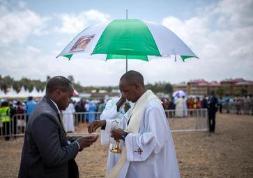 MAKE A MEME View Large Image May 2015, and made available by Make It Kenya, a priest hands out wafers to attendees as part of Holy Communion during a ceremony to mark the beatification of Sister Irene Stefani, an Italian nun and missionary who is beloved in Nyeri and ...