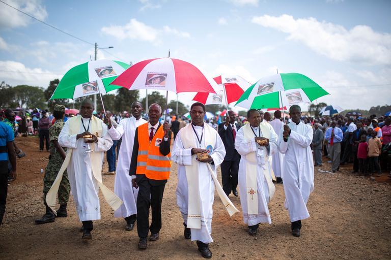 | Keywords: kenya nyeri africa roman catholic italy nun sister irene stefani nyaatha mathari gikoni sainthood missionary world war one beatification ceremony soldiers wounded tourism christian nuns faith religion outdoor KENYA, Nyeri: In a photograph taken 23 May 2015, and made available by Make It Kenya, priests walk to administer the Holy Communion as a part of a ceremony to mark the beatification of Sister Irene Stefani, an Italian nun and missionary who is beloved in Nyeri and its environs for her selfless service to wounded World War One soldiers and ailing locals alike. Thousands of Catholic faithful, clery, government officials, residents and visitors gathered in the Kenyan town of Nyeri today, 23 May, to witness Africa’s first beatification ceremony for Sister Stefani, who was known as Aurelia Jacoba Mercede until she joined the Consolata Missionary Sisters and changed her name in 1911. She arrived in Nyeri in 1915 and gained fame over the years for her genorosity and extraordinary empathy for the sick, wounded and aged. She died in 1930 at the age of 39, after contracting plague from infected patients that she insisted on treating. Catholic authorities say that reports of her kindness and a miracle attributed to her intercession, moved Pope Francis to approve preparations for her beatification in 2014. MANDATORY CREDIT: MAKE IT KENYA PHOTO / STUART PRICE. KENYA, Nyeri: In a photograph taken 23 May 2015, and made available by Make It Kenya, priests walk to administer the Holy Communion as a part of a ceremony to mark the beatification of Sister Irene Stefani, an Italian nun and missionary who is beloved in Nyeri and its environs for her selfless service to wounded World War One soldiers and ailing locals alike. Thousands of Catholic faithful, clery, government officials, residents and visitors gathered in the Kenyan town of Nyeri today, 23 May, to witness Africa’s first beatification ceremony for Sister Stefani, who was known as Aurelia Jacoba Mercede until she joined the Consolata Missionary Sisters and changed her name in 1911. She arrived in Nyeri in 1915 and gained fame over the years for her genorosity and extraordinary empathy for the sick, wounded and aged. She died in 1930 at the age of 39, after contracting plague from infected patients that she insisted on treating. Catholic authorities say that reports of her kindness and a miracle attributed to her intercession, moved Pope Francis to approve preparations for her beatification in 2014. MANDATORY CREDIT: MAKE IT KENYA PHOTO / STUART PRICE. |