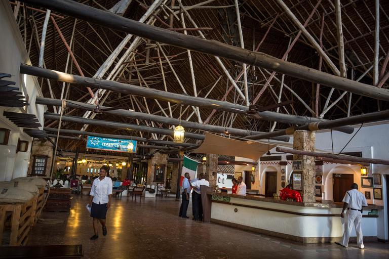 | Keywords: kenya mombasa nyali voyager beach resort heritage hotels tourism tourists domestic foreign coast indian ocean sea holiday hotel getaway sun curios truss architecture building structure building KENYA, Mombasa: A photograph taken by Make It Kenya shows a general view of the reception area and foyer of Heritage Hotels' Voyager Beach Resort in Mombasa, 28 May 2015. MANDATORY CREDIT: MAKE IT KENYA PHOTO / STUART PRICE. KENYA, Mombasa: A photograph taken by Make It Kenya shows a general view of the reception area and foyer of Heritage Hotels' Voyager Beach Resort in Mombasa, 28 May 2015. MANDATORY CREDIT: MAKE IT KENYA PHOTO / STUART PRICE. |
