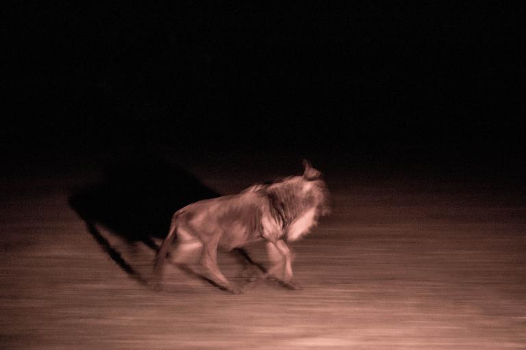 Keywords: kenya maasai mara national reserve ol kinyei porini gamewatchers wildlife management nature conservation environment conservancy employment community guide tracker tourism tourists safari holiday monochrome KENYA, Ol Kinyei, Maasai Mara: In a photograph taken by Make It Kenya 13 June 2015, a Wildebeest is illuminated in an infra-red torch light at night in the Ol Kinyei Conservancy in Kenya's Maasai Mara. The management of Ol Kinyei and similar conservancies bordering the Maasai Mara National Reserve and in other areas of Kenya is an alternative approach to wildlife conservation. The land on which the conservancies are located is leased from local communities who directly benefit from its use to naturally host and protect wildlife populations. The privately owned and managed conservancies also offer employment to members of these communities and further opportunity of training in different areas of expertise from guides and trackers to chefs and camp management. Strict regulation of visitor numbers and the construction of camps inside the conservancies also limit the amount of people and vehicles present at any given time, offering tourists a much more personal and exclusive wildlife safari experience while at the same time reducing stress on and the disturbance of wildlife populations, which quickly begin to return and repopulate areas and land transformed under the conservancy model. MANDATORY CREDIT: MAKE IT KENYA PHOTO / STUART PRICE. KENYA, Ol Kinyei, Maasai Mara: In a photograph taken by Make It Kenya 13 June 2015, a Wildebeest is illuminated in an infra-red torch light at night in the Ol Kinyei Conservancy in Kenya's Maasai Mara. The management of Ol Kinyei and similar conservancies bordering the Maasai Mara National Reserve and in other areas of Kenya is an alternative approach to wildlife conservation. The land on which the conservancies are located is leased from local communities who directly benefit from its use to naturally host and protect wildlife populations. The privately owned and managed conservancies also offer employment to members of these communities and further opportunity of training in different areas of expertise from guides and trackers to chefs and camp management. Strict regulation of visitor numbers and the construction of camps inside the conservancies also limit the amount of people and vehicles present at any given time, offering tourists a much more personal and exclusive wildlife safari experience while at the same time reducing stress on and the disturbance of wildlife populations, which quickly begin to return and repopulate areas and land transformed under the conservancy model. MANDATORY CREDIT: MAKE IT KENYA PHOTO / STUART PRICE.