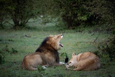 | Keywords: kenya maasai mara national reserve ol kinyei porini gamewatchers wildlife management nature conservation environment conservancy employment community guide tracker tourism tourists safari holiday outdoor animal carnivore KENYA, Ol Kinyei, Maasai Mara: In a photograph taken by Make It Kenya 13 June 2015, a male lion yawns while a lioness rests in the Ol Kinyei Conservancy in Kenya's Maasai Mara, during a prolonged mating session, which sees them copulate roughly every 15mins during a 48hr period. The management of Ol Kinyei and similar conservancies bordering the Maasai Mara National Reserve and in other areas of Kenya is an alternative approach to wildlife conservation. The land on which the conservancies are located is leased from local communities who directly benefit from its use to naturally host and protect wildlife populations. The privately owned and managed conservancies also offer employment to members of these communities and further opportunity of training in different areas of expertise from guides and trackers to chefs and camp management. Strict regulation of visitor numbers and the construction of camps inside the conservancies also limit the amount of people and vehicles present at any given time, offering tourists a much more personal and exclusive wildlife safari experience while at the same time reducing stress on and the disturbance of wildlife populations, which quickly begin to return and repopulate areas and land transformed under the conservancy model. MANDATORY CREDIT: MAKE IT KENYA PHOTO / STUART PRICE. KENYA, Ol Kinyei, Maasai Mara: In a photograph taken by Make It Kenya 13 June 2015, a male lion yawns while a lioness rests in the Ol Kinyei Conservancy in Kenya's Maasai Mara, during a prolonged mating session, which sees them copulate roughly every 15mins during a 48hr period. The management of Ol Kinyei and similar conservancies bordering the Maasai Mara National Reserve and in other areas of Kenya is an alternative approach to wildlife conservation. The land on which the conservancies are located is leased from local communities who directly benefit from its use to naturally host and protect wildlife populations. The privately owned and managed conservancies also offer employment to members of these communities and further opportunity of training in different areas of expertise from guides and trackers to chefs and camp management. Strict regulation of visitor numbers and the construction of camps inside the conservancies also limit the amount of people and vehicles present at any given time, offering tourists a much more personal and exclusive wildlife safari experience while at the same time reducing stress on and the disturbance of wildlife populations, which quickly begin to return and repopulate areas and land transformed under the conservancy model. MANDATORY CREDIT: MAKE IT KENYA PHOTO / STUART PRICE. |