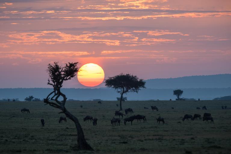 | Keywords: kenya maasai mara national reserve ol kinyei porini gamewatchers wildlife management nature conservation environment conservancy employment community guide tracker tourism tourists safari holiday outdoor sunset KENYA, Ol Kinyei, Maasai Mara: In a photograph taken by Make It Kenya 15 June 2015, Wildebeest graze on the grassland savannah as the sun rises over the Ol Kinyei Conservancy in Kenya's Maasai Mara. The management of Ol Kinyei and similar conservancies bordering the Maasai Mara National Reserve and in other areas of Kenya is an alternative approach to wildlife conservation. The land on which the conservancies are located is leased from local communities who directly benefit from its use to naturally host and protect wildlife populations. The privately owned and managed conservancies also offer employment to members of these communities and further opportunity of training in different areas of expertise from guides and trackers to chefs and camp management. Strict regulation of visitor numbers and the construction of camps inside the conservancies also limit the amount of people and vehicles present at any given time, offering tourists a much more personal and exclusive wildlife safari experience while at the same time reducing stress on and the disturbance of wildlife populations, which quickly begin to return and repopulate areas and land transformed under the conservancy model. MANDATORY CREDIT: MAKE IT KENYA PHOTO / STUART PRICE. KENYA, Ol Kinyei, Maasai Mara: In a photograph taken by Make It Kenya 15 June 2015, Wildebeest graze on the grassland savannah as the sun rises over the Ol Kinyei Conservancy in Kenya's Maasai Mara. The management of Ol Kinyei and similar conservancies bordering the Maasai Mara National Reserve and in other areas of Kenya is an alternative approach to wildlife conservation. The land on which the conservancies are located is leased from local communities who directly benefit from its use to naturally host and protect wildlife populations. The privately owned and managed conservancies also offer employment to members of these communities and further opportunity of training in different areas of expertise from guides and trackers to chefs and camp management. Strict regulation of visitor numbers and the construction of camps inside the conservancies also limit the amount of people and vehicles present at any given time, offering tourists a much more personal and exclusive wildlife safari experience while at the same time reducing stress on and the disturbance of wildlife populations, which quickly begin to return and repopulate areas and land transformed under the conservancy model. MANDATORY CREDIT: MAKE IT KENYA PHOTO / STUART PRICE. |