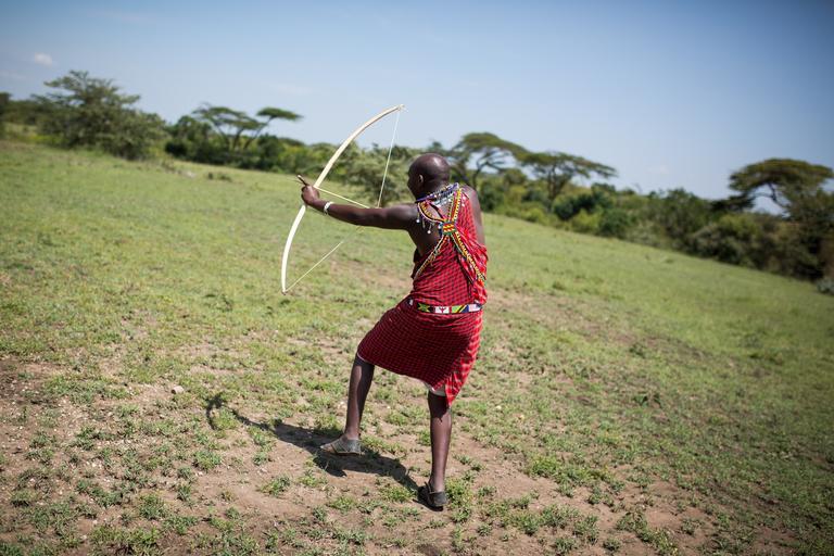 MAKE A MEME View Large Image Maasai Mara: In a photograph taken by Make It Kenya 15 June 2015, a Maasai guide shoots a traditional hunting bow and arrow during a walking safari with Phil Edwards, a repeat, yearly vistor to Porini Mara Camp in the Ol Kinyei Conservancy ...