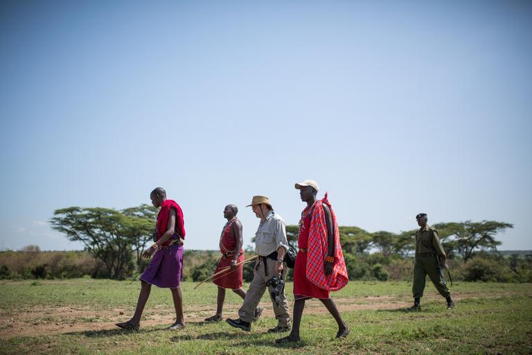 MAKE A MEME View Large Image Maasai Mara: In a photograph taken by Make It Kenya 15 June 2015, Phil Edwards, a repeat, yearly vistor to Porini Mara Camp in the Ol Kinyei Conservancy in Kenya's Maasai Mara, walks with Maasai guides during a walking safari. The ...