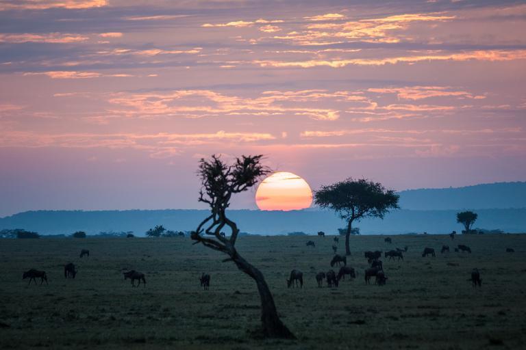 MAKE A MEME View Large Image Maasai Mara: In a photograph taken by Make It Kenya 15 June 2015, Wildebeest graze on the grassland savannah as the sun rises over the Ol Kinyei Conservancy in Kenya's Maasai Mara. The management of Ol Kinyei and similar conservancies ...