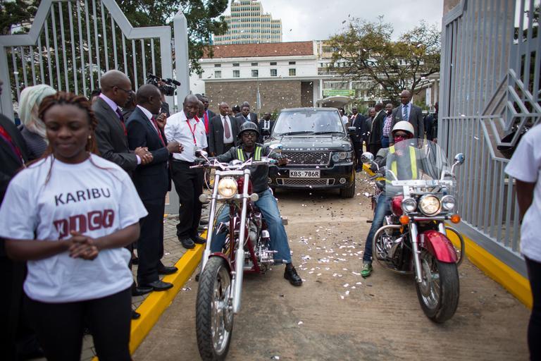 Keywords: kenya nairobi united states america global entrepreneur summit ges expo business innovators start-up startup commerce trade youth empowerment development president barack obama kenyatta international conference centre kicc sub-saharan subsaharan africa mentors investors government vehicle bike outdoor kenya nairobi united states america global entrepreneur summit ges expo business innovators start-up startup commerce trade youth empowerment development president barack obama kenyatta international conference centre kicc sub-saharan subsaharan africa mentors investors government vehicle bike outdoor KENYA, Nairobi: In a photograph taken by Make It Kenya 21 July 2015, Nairobi Governor Evans Kidero arrives at the Kenyatta International Conference Centre to inaugurate a new gated entrance to the complex a day before the Pre-Global Entrepreneurship Summit (GES) Expo. Final preparations are being made to host the Pre-GES Expo from 22-23 July ahead of US President Barack Obama's much-anticipated visit to the east African nation this weekend where he will address the main Global Entrepreneurship Summit which brings together entrepreneurs at all stages of business development, business leaders, mentors, and high-level government officials. MANDATORY CREDIT: MAKE IT KENYA PHOTO / STUART PRICE. KENYA, Nairobi: In a photograph taken by Make It Kenya 21 July 2015, Nairobi Governor Evans Kidero arrives at the Kenyatta International Conference Centre to inaugurate a new gated entrance to the complex a day before the Pre-Global Entrepreneurship Summit (GES) Expo. Final preparations are being made to host the Pre-GES Expo from 22-23 July ahead of US President Barack Obama's much-anticipated visit to the east African nation this weekend where he will address the main Global Entrepreneurship Summit which brings together entrepreneurs at all stages of business development, business leaders, mentors, and high-level government officials. MANDATORY CREDIT: MAKE IT KENYA PHOTO / STUART PRICE. KENYA, Nairobi: In a photograph taken by the Ministry of East African Affairs, Commerce and Tourism (MEAACT) 21 July 2015, Nairobi Governor Evans Kidero arrives at the Kenyatta International Conference Centre to inaugurate a new gated entrance to the complex a day before the Pre-Global Entrepreneurship Summit (GES) Expo. Final preparations are being made to host the Pre-GES Expo from 22-23 July ahead of US President Barack Obama's much-anticipated visit to the east African nation this weekend where he will address the main Global Entrepreneurship Summit which brings together entrepreneurs at all stages of business development, business leaders, mentors, and high-level government officials. MANDATORY CREDIT: MEAACT PHOTO / STUART PRICE. KENYA, Nairobi: In a photograph taken by the Ministry of East African Affairs, Commerce and Tourism (MEAACT) 21 July 2015, Nairobi Governor Evans Kidero arrives at the Kenyatta International Conference Centre to inaugurate a new gated entrance to the complex a day before the Pre-Global Entrepreneurship Summit (GES) Expo. Final preparations are being made to host the Pre-GES Expo from 22-23 July ahead of US President Barack Obama's much-anticipated visit to the east African nation this weekend where he will address the main Global Entrepreneurship Summit which brings together entrepreneurs at all stages of business development, business leaders, mentors, and high-level government officials. MANDATORY CREDIT: MEAACT PHOTO / STUART PRICE. |
