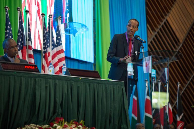 Keywords: kenya nairobi united states america global entrepreneur summit ges expo business innovators start-up startup commerce trade youth empowerment development president barack obama kenyatta international conference centre kicc sub-saharan subsaharan africa mentors investors government kenya nairobi united states america global entrepreneur summit ges expo business innovators start-up startup commerce trade youth empowerment development president barack obama kenyatta international conference centre kicc sub-saharan subsaharan africa mentors investors government KENYA, Nairobi: In a photograph taken by the Kenyan Ministry of East African Affairs, Commerce and Tourism (MEAACT) 22 July 2015, Kago Kagichiri, Co-founder and CTO of Eneza Education, a company dedicated to improving education of children in Africa, speaks during the opening ceremony of the Pre-Global Entrepreneurship Summit (GES) Expo being held at the Kenyatta International Conference Centre in the Kenyan capital Nairobi ahead of US President Barack Obama's much-anticipated visit to the east African nation this weekend. The Pre-GES Expo being held over the 22-23 July in the Kenyan capital showcases Kenyan start-ups, innovators, entrepreneurs and small businesses from across the country with the main Global Entrepreneurship Summit taking place for the first time in sub-Saharan Africa this weekend bringing together entrepreneurs at all stages of business development, business leaders, mentors, investors and high-level government officials. MANDATORY CREDIT: MEAACT PHOTO / STUART PRICE. KENYA, Nairobi: In a photograph taken by the Kenyan Ministry of East African Affairs, Commerce and Tourism (MEAACT) 22 July 2015, Kago Kagichiri, Co-founder and CTO of Eneza Education, a company dedicated to improving education of children in Africa, speaks during the opening ceremony of the Pre-Global Entrepreneurship Summit (GES) Expo being held at the Kenyatta International Conference Centre in the Kenyan capital Nairobi ahead of US President Barack Obama's much-anticipated visit to the east African nation this weekend. The Pre-GES Expo being held over the 22-23 July in the Kenyan capital showcases Kenyan start-ups, innovators, entrepreneurs and small businesses from across the country with the main Global Entrepreneurship Summit taking place for the first time in sub-Saharan Africa this weekend bringing together entrepreneurs at all stages of business development, business leaders, mentors, investors and high-level government officials. MANDATORY CREDIT: MEAACT PHOTO / STUART PRICE. KENYA, Nairobi: In a photograph taken by Make It Kenya 22 July 2015, Kago Kagichiri, Co-founder and CTO of Eneza Education, a company dedicated to improving education of children in Africa, speaks during the opening ceremony of the Pre-Global Entrepreneurship Summit (GES) Expo being held at the Kenyatta International Conference Centre in the Kenyan capital Nairobi ahead of US President Barack Obama's much-anticipated visit to the east African nation this weekend. The Pre-GES Expo being held over the 22-23 July in the Kenyan capital showcases Kenyan start-ups, innovators, entrepreneurs and small businesses from across the country with the main Global Entrepreneurship Summit taking place for the first time in sub-Saharan Africa this weekend bringing together entrepreneurs at all stages of business development, business leaders, mentors, investors and high-level government officials. MANDATORY CREDIT: MAKE IT KENYA PHOTO / STUART PRICE. KENYA, Nairobi: In a photograph taken by Make It Kenya 22 July 2015, Kago Kagichiri, Co-founder and CTO of Eneza Education, a company dedicated to improving education of children in Africa, speaks during the opening ceremony of the Pre-Global Entrepreneurship Summit (GES) Expo being held at the Kenyatta International Conference Centre in the Kenyan capital Nairobi ahead of US President Barack Obama's much-anticipated visit to the east African nation this weekend. The Pre-GES Expo being held over the 22-23 July in the Kenyan capital showcases Kenyan start-ups, innovators, entrepreneurs and small businesses from across the country with the main Global Entrepreneurship Summit taking place for the first time in sub-Saharan Africa this weekend bringing together entrepreneurs at all stages of business development, business leaders, mentors, investors and high-level government officials. MANDATORY CREDIT: MAKE IT KENYA PHOTO / STUART PRICE.