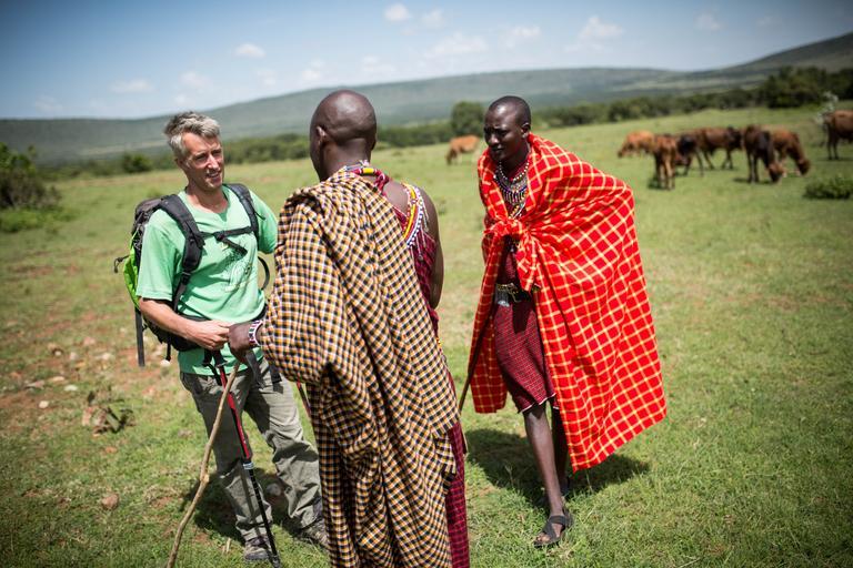 MAKE A MEME View Large Image Maasai Mara: In a photograph taken by Make It Kenya 24 June 2015, author and travel writer Stuart Butler and his Maasai guide and companion Josphat Mako talk with a Maasai known as Lemeria in the Mara North Conservancy adjacent to Kenya's ...