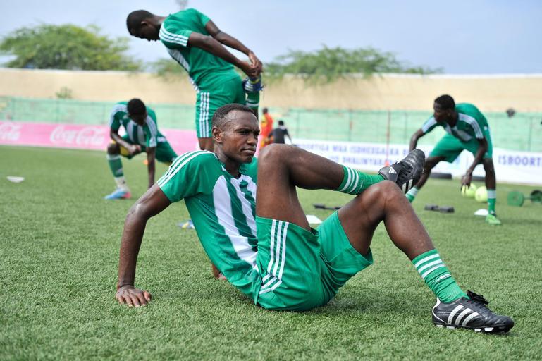 | Keywords: outdoor The Somalia national soccer team seen doing drills during a training session at Banadir stadium in Mogadishu on August 29 2015, in preparation for the upcoming World Cup Qualifiers. Sports in Somalia is recovering as a result of the relative peace and progress witnessed in the country. AMISOM Photo / Ilyas Ahmed The Somalia national soccer team seen doing drills during a training session at Banadir stadium in Mogadishu on August 29 2015, in preparation for the upcoming World Cup Qualifiers. Sports in Somalia is recovering as a result of the relative peace and progress witnessed in the country. AMISOM Photo / Ilyas Ahmed |