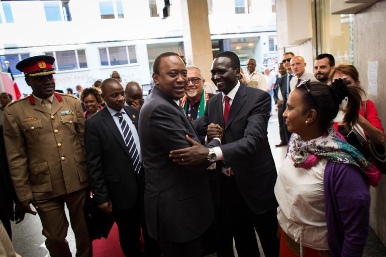Keywords: make it kenya campaign launch president uhuru kenyatta magicalkenya whyilovekenya tembeakenya kenyaliving proudlykenyan businessafrica businessinafrica investmentkenya kenyameansbusiness investinkenya brandkenya africarising business commerce trade investment ITALY, Milan: In a photograph taken by Make It Kenya, 8 September 2015, Kenyan President Uhuru Kenyatta arrives at the Make It Kenya international brand campaign launch in the Italian city of Milan. Introduced by the Ministry of East African Affairs, Commerce and Tourism (MEAACT) to promote and enhance Kenya’s position as a global leader in tourism, commerce and investment, the VIP event at Kenya House, an extension of Kenya’s Expo pavilion that is located in the centre of Milan and being used to further showcase Kenya’s cultural and economic assets, saw President Kenyatta officially activate the new digital portal MakeItKenya.com and supporting social media platforms. The digital elements have been specifically designed as a source of rich sharable content that will connect the world to Kenya, through people’s computers, smart phones and digital devices. MANDATORY CREDIT: MAKE IT KENYA PHOTO / STUART PRICE. ITALY, Milan: In a photograph taken by Make It Kenya, 8 September 2015, Kenyan President Uhuru Kenyatta arrives at the Make It Kenya international brand campaign launch in the Italian city of Milan. Introduced by the Ministry of East African Affairs, Commerce and Tourism (MEAACT) to promote and enhance Kenya’s position as a global leader in tourism, commerce and investment, the VIP event at Kenya House, an extension of Kenya’s Expo pavilion that is located in the centre of Milan and being used to further showcase Kenya’s cultural and economic assets, saw President Kenyatta officially activate the new digital portal MakeItKenya.com and supporting social media platforms. The digital elements have been specifically designed as a source of rich sharable content that will connect the world to Kenya, through people’s computers, smart phones and digital devices. MANDATORY CREDIT: MAKE IT KENYA PHOTO / STUART PRICE.