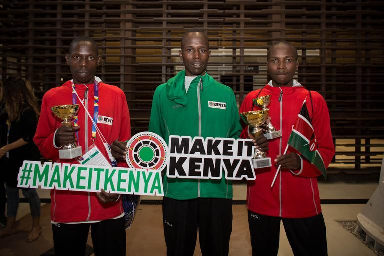 Keywords: kenya italy milan expo 2015 traditional singing dancing song dance race marathon athletes runners run 3km 10km music celebration showcase world coffee nation tourism investment sport team sport people athlete ITALY, Milan: In a photograph taken by Make It Kenya, 10 September 2015, Kenyan runner Thomas James Lokomwa (centre), winner of the Kenya Expo 'Run With The Champions' 10km race held at Expo Milan 2015, stands with second place Geoffrey Kiprono Ngetich (left) and Silas Muturi Gichovi (right) who came in third making a clean Kenyan 1-2-3. The race, along with a family 3km fun-run which took place earlier in the day, was one of a number of events held in Milan this week to mark the Kenyan Week celebrations at Expo Milan 2015, a universal exhibition and platform for the exchange of ideas and shared solutions on the theme of food. MANDATORY CREDIT: MAKE IT KENYA PHOTO / STUART PRICE. ITALY, Milan: In a photograph taken by Make It Kenya, 10 September 2015, Kenyan runner Thomas James Lokomwa (centre), winner of the Kenya Expo 'Run With The Champions' 10km race held at Expo Milan 2015, stands with second place Geoffrey Kiprono Ngetich (left) and Silas Muturi Gichovi (right) who came in third making a clean Kenyan 1-2-3. The race, along with a family 3km fun-run which took place earlier in the day, was one of a number of events held in Milan this week to mark the Kenyan Week celebrations at Expo Milan 2015, a universal exhibition and platform for the exchange of ideas and shared solutions on the theme of food. MANDATORY CREDIT: MAKE IT KENYA PHOTO / STUART PRICE. |