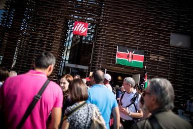 Keywords: kenya italy milan expo 2015 traditional singing dancing song dance race marathon athletes runners run 3km 10km music celebration showcase world coffee nation tourism investment people ITALY, Milan: Photograph taken by Make It Kenya 10 September 2015, visitors gather outside the Kenya Pavilion as part of Kenyan Week celebrations at Expo Milan 2015, a universal exhibition and platform for the exchange of ideas and shared solutions on the theme of food. A number of events were held in Milan to mark the occasion, incluing a 3km family fun run completed by Hon. Phyllis Kandie, Minister for East Afrian Affairs, Commerce and Tourism (MEAACT) and the Kenya Expo Run With The Champions 10km race in which some of Kenyans top athletes competed against professional and enthusiast runners alike. MANDATORY CREDIT: MAKE IT KENYA PHOTO / STUART PRICE. ITALY, Milan: Photograph taken by Make It Kenya 10 September 2015, visitors gather outside the Kenya Pavilion as part of Kenyan Week celebrations at Expo Milan 2015, a universal exhibition and platform for the exchange of ideas and shared solutions on the theme of food. A number of events were held in Milan to mark the occasion, incluing a 3km family fun run completed by Hon. Phyllis Kandie, Minister for East Afrian Affairs, Commerce and Tourism (MEAACT) and the Kenya Expo Run With The Champions 10km race in which some of Kenyans top athletes competed against professional and enthusiast runners alike. MANDATORY CREDIT: MAKE IT KENYA PHOTO / STUART PRICE. |
