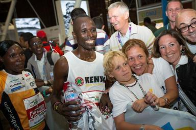 Keywords: kenya italy milan expo 2015 traditional singing dancing song dance race marathon athletes runners run 3km 10km music celebration showcase world coffee nation tourism investment groupshot people ITALY, Milan: In a photograph taken by Make It Kenya, 10 September 2015, Kenyan runner Thomas James Lokomwa poses for a photograph after crossing the finish line in first place to win the Kenya Expo 'Run With The Champions' 10km race held at Expo Milan 2015. Kenyan runner Thomas James Lokomwa won the race with second place Geoffrey Kiprono Ngetich coming in ahead of Silas Muturi Gichovi making a clean Kenyan 1-2-3. The race, along with a family 3km fun-run which took place earlier in the day, was one of a number of events held in Milan this week to mark the Kenyan Week celebrations at Expo Milan 2015, a universal exhibition and platform for the exchange of ideas and shared solutions on the theme of food. MANDATORY CREDIT: MAKE IT KENYA PHOTO / STUART PRICE. ITALY, Milan: In a photograph taken by Make It Kenya, 10 September 2015, Kenyan runner Thomas James Lokomwa poses for a photograph after crossing the finish line in first place to win the Kenya Expo 'Run With The Champions' 10km race held at Expo Milan 2015. Kenyan runner Thomas James Lokomwa won the race with second place Geoffrey Kiprono Ngetich coming in ahead of Silas Muturi Gichovi making a clean Kenyan 1-2-3. The race, along with a family 3km fun-run which took place earlier in the day, was one of a number of events held in Milan this week to mark the Kenyan Week celebrations at Expo Milan 2015, a universal exhibition and platform for the exchange of ideas and shared solutions on the theme of food. MANDATORY CREDIT: MAKE IT KENYA PHOTO / STUART PRICE. |