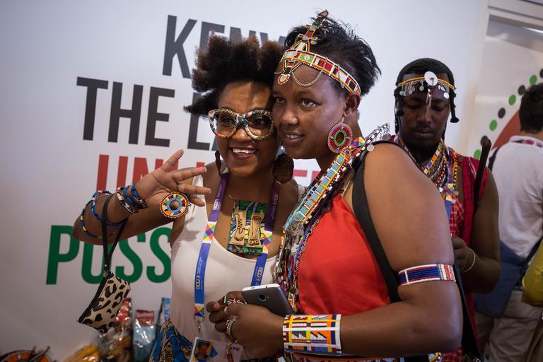 | Keywords: kenya italy milan expo 2015 traditional singing dancing song dance race marathon athletes runners run 3km 10km music celebration showcase world coffee nation tourism investment people musician performer ITALY, Milan: In a photograph taken by Make It Kenya 10 September 2015, a member of the public poses for photographs with a Maasai woman inside the Kenya Pavilion as part of Kenyan Week celebrations at Expo Milan 2015, a universal exhibition and platform for the exchange of ideas and shared solutions on the theme of food. A number of events were held in Milan to mark the occasion, incluing a 3km family fun run completed by Hon. Phyllis Kandie, Minister for East Afrian Affairs, Commerce and Tourism (MEAACT) and the Kenya Expo Run With The Champions 10km race in which some of Kenyans top athletes competed against professional and enthusiast runners alike. MANDATORY CREDIT: MAKE IT KENYA PHOTO / STUART PRICE. ITALY, Milan: In a photograph taken by Make It Kenya 10 September 2015, a member of the public poses for photographs with a Maasai woman inside the Kenya Pavilion as part of Kenyan Week celebrations at Expo Milan 2015, a universal exhibition and platform for the exchange of ideas and shared solutions on the theme of food. A number of events were held in Milan to mark the occasion, incluing a 3km family fun run completed by Hon. Phyllis Kandie, Minister for East Afrian Affairs, Commerce and Tourism (MEAACT) and the Kenya Expo Run With The Champions 10km race in which some of Kenyans top athletes competed against professional and enthusiast runners alike. MANDATORY CREDIT: MAKE IT KENYA PHOTO / STUART PRICE. |