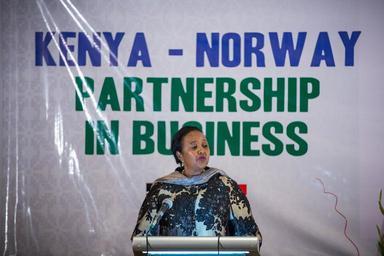 Keywords: norway kenya business partnership nairobi trade investment relations development public private sector ceos companies KENYA, Nairobi: In a photograph taken by Make It Kenya 18 September 2015, Dr. Amina Mohamed, Cabinet Secretary for The Kenyan Ministry of Foreign Affairs and International Trade speaks at the opening of the Kenya-Norway Partnership in Business Seminar at the InterContinental Hotel in the Kenyan capital Nairobi. The seminar saw Norway's Minister of Trade & Industry Ms. Monica Maelend lead a delegation of over 50 Norwegian CEOs and business representatives to Kenya to meet a series of high profile public and private sector companies in a move designed as a major development in Kenya-Norway investment relations. MAKE IT KENYA PHOTO / STUART PRICE. KENYA, Nairobi: In a photograph taken by Make It Kenya 18 September 2015, Dr. Amina Mohamed, Cabinet Secretary for The Kenyan Ministry of Foreign Affairs and International Trade speaks at the opening of the Kenya-Norway Partnership in Business Seminar at the InterContinental Hotel in the Kenyan capital Nairobi. The seminar saw Norway's Minister of Trade & Industry Ms. Monica Maelend lead a delegation of over 50 Norwegian CEOs and business representatives to Kenya to meet a series of high profile public and private sector companies in a move designed as a major development in Kenya-Norway investment relations. MAKE IT KENYA PHOTO / STUART PRICE. |