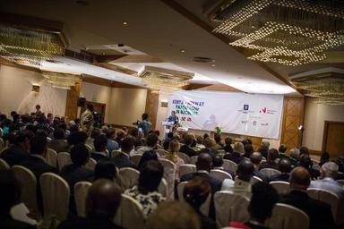 Keywords: norway kenya business partnership nairobi trade investment relations development public private sector ceos companies hall auditorium room indoor people crowd KENYA, Nairobi: In a photograph taken by Make It Kenya 18 September 2015, Dr. Amina Mohamed, Cabinet Secretary for The Kenyan Ministry of Foreign Affairs and International Trade speaks at the opening of the Kenya-Norway Partnership in Business Seminar at the InterContinental Hotel in the Kenyan capital Nairobi. The seminar saw Norway's Minister of Trade & Industry Ms. Monica Maelend lead a delegation of over 50 Norwegian CEOs and business representatives to Kenya to meet a series of high profile public and private sector companies in a move designed as a major development in Kenya-Norway investment relations. MAKE IT KENYA PHOTO / STUART PRICE. KENYA, Nairobi: In a photograph taken by Make It Kenya 18 September 2015, Dr. Amina Mohamed, Cabinet Secretary for The Kenyan Ministry of Foreign Affairs and International Trade speaks at the opening of the Kenya-Norway Partnership in Business Seminar at the InterContinental Hotel in the Kenyan capital Nairobi. The seminar saw Norway's Minister of Trade & Industry Ms. Monica Maelend lead a delegation of over 50 Norwegian CEOs and business representatives to Kenya to meet a series of high profile public and private sector companies in a move designed as a major development in Kenya-Norway investment relations. MAKE IT KENYA PHOTO / STUART PRICE. |