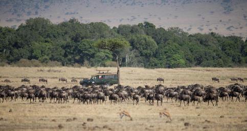 MAKE A MEME View Large Image Masai Mara: In a photograph taken by Make It Kenya 29 September 2015, a safari vehicle observes a herd of wildesbeest on the savannah near the Mara River in Kenya's world famous Masai Mara National Reserve. Every year, hundreds of thousands ...