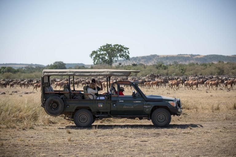 | Keywords: outdoor KENYA, Masai Mara: In a photograph taken by Make It Kenya 29 September 2015, a safari vehicle observes a herd of wildesbeest on the savannah near the Mara River in Kenya's world famous Masai Mara National Reserve. Every year, hundreds of thousands of wildebeest, zebra and other ungulate animals migrate between Tanzania's Serengeti and Kenya's Masai Mara in a year-long, continuous cycle, which sees the animals travel thousands of kilometres and is known as one of the seven natural wonders of the world, and is a major draw for wildlife enthusiasts and tourists from around the world. MANDATORY CREDIT: MAKE IT KENYA PHOTO / STUART PRICE. KENYA, Masai Mara: In a photograph taken by Make It Kenya 29 September 2015, a safari vehicle observes a herd of wildesbeest on the savannah near the Mara River in Kenya's world famous Masai Mara National Reserve. Every year, hundreds of thousands of wildebeest, zebra and other ungulate animals migrate between Tanzania's Serengeti and Kenya's Masai Mara in a year-long, continuous cycle, which sees the animals travel thousands of kilometres and is known as one of the seven natural wonders of the world, and is a major draw for wildlife enthusiasts and tourists from around the world. MANDATORY CREDIT: MAKE IT KENYA PHOTO / STUART PRICE. |