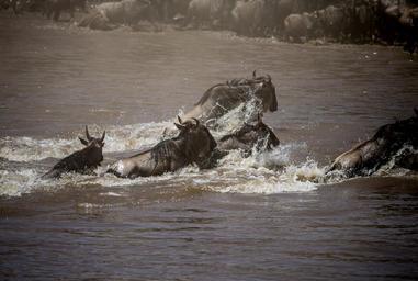 Keywords: outdoor animal KENYA, Masai Mara: In a photograph taken by Make It Kenya 29 September 2015, a large group of wildebeest cross the Mara River in Kenya's world famous Masai Mara National Reserve. Every year, hundreds of thousands of wildebeest, zebra and other ungulate animals migrate between Tanzania's Serengeti and Kenya's Masai Mara in a year-long, continuous cycle, which sees the animals travel thousands of kilometres and is known as one of the seven natural wonders of the world, and is a major draw for wildlife enthusiasts and tourists from around the world. MANDATORY CREDIT: MAKE IT KENYA PHOTO / STUART PRICE. KENYA, Masai Mara: In a photograph taken by Make It Kenya 29 September 2015, a large group of wildebeest cross the Mara River in Kenya's world famous Masai Mara National Reserve. Every year, hundreds of thousands of wildebeest, zebra and other ungulate animals migrate between Tanzania's Serengeti and Kenya's Masai Mara in a year-long, continuous cycle, which sees the animals travel thousands of kilometres and is known as one of the seven natural wonders of the world, and is a major draw for wildlife enthusiasts and tourists from around the world. MANDATORY CREDIT: MAKE IT KENYA PHOTO / STUART PRICE. |