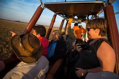 | Keywords: KENYA, Masai Mara: In a photograph taken by Make It Kenya 02 October 2015, tourists take photographs and look out from the basket of a Governor's Balloon Safari hot air balloon as it floats along the course of the Mara River just after sunrise. Seeing the Mara from the air requires an early start in order to be airborne for the sunrise, but offers tourists visiting the famous wildlife reserve a unique and panoramic way to view one of Kenya's most famous natural attractions from the basket of a hot air balloon. MANDATORY CREDIT: MAKE IT KENYA PHOTO / STUART PRICE. KENYA, Masai Mara: In a photograph taken by Make It Kenya 02 October 2015, tourists take photographs and look out from the basket of a Governor's Balloon Safari hot air balloon as it floats along the course of the Mara River just after sunrise. Seeing the Mara from the air requires an early start in order to be airborne for the sunrise, but offers tourists visiting the famous wildlife reserve a unique and panoramic way to view one of Kenya's most famous natural attractions from the basket of a hot air balloon. MANDATORY CREDIT: MAKE IT KENYA PHOTO / STUART PRICE. |